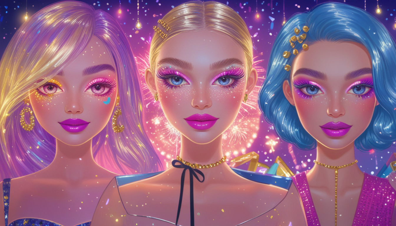 Solveefy StudiosNew Year Makeup Trends is a beauty makeup game where you step into the role of stylist for Ellie, Olivia, and Kiki as they get ready to dress in their best to ring in the new year! Experiment with endless combinations of glamorous hairstyles, chic dresses, vibrant makeup shades, and eye-catching accessories to craft the ultimate party look.