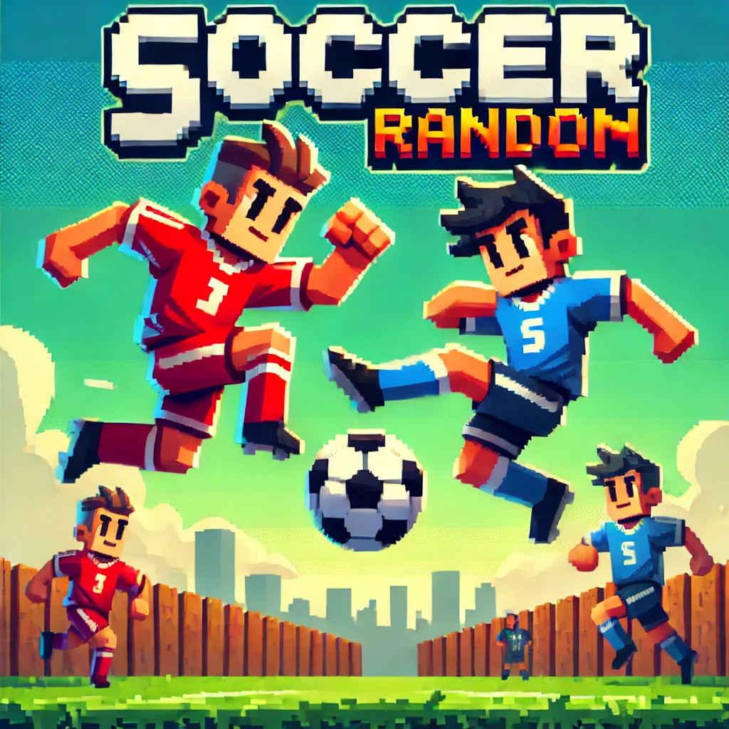 Soccer Random is a two-player pixel-art soccer game with limited controls but unlimited randomness. Players hop and kick on the pitch with just one click, trying to score a goal with limited movement.